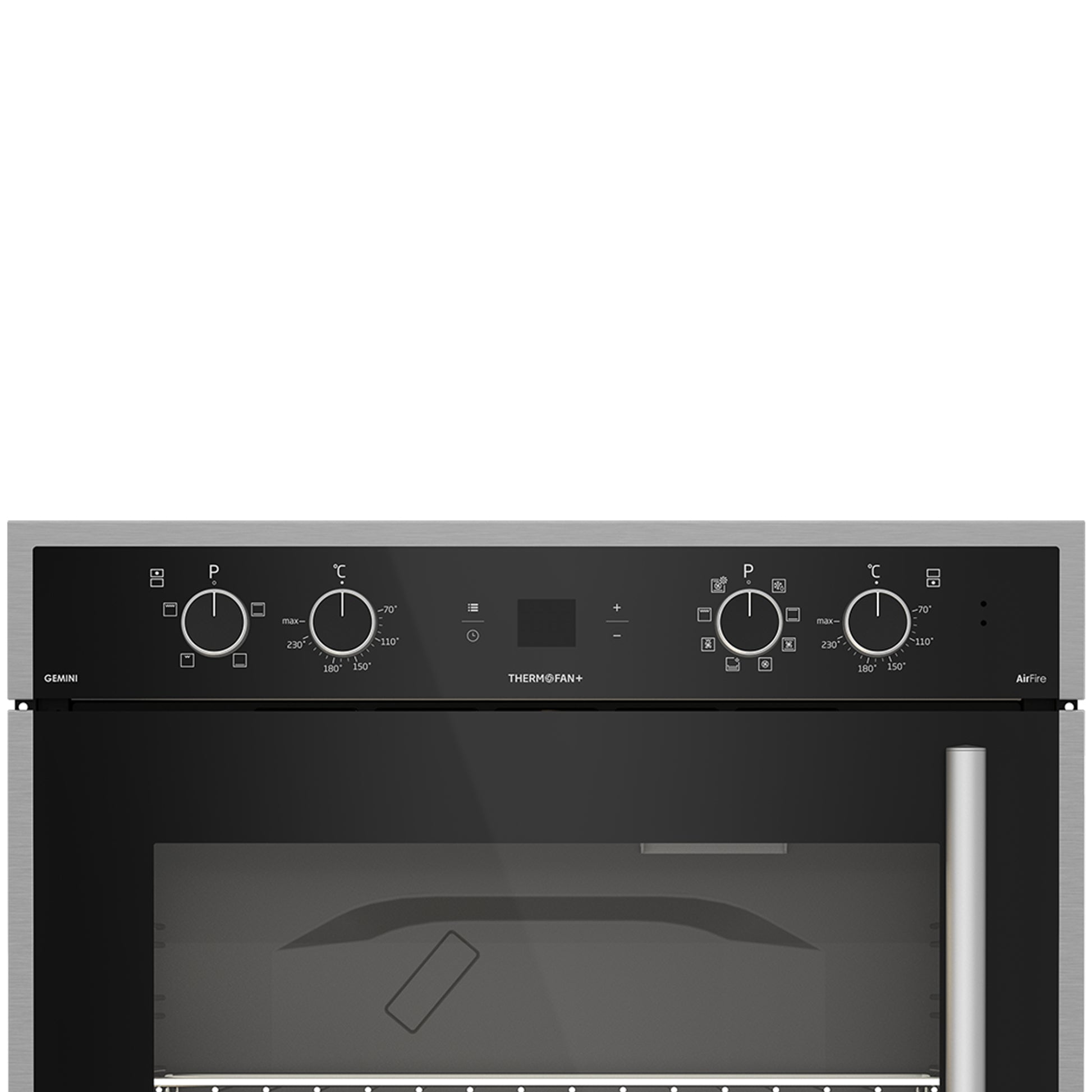 The Defy DBO767 Gemini Gourmet Chef is a full-sized double eye-level built-in oven ideal for families and avid home cooks. With Thermofan+ technology and a generous capacity across both ovens, it delivers superior cooking flexibility and efficiency. Its modern black glass finish complements contemporary kitchen designs while offering intuitive control and durable performance.