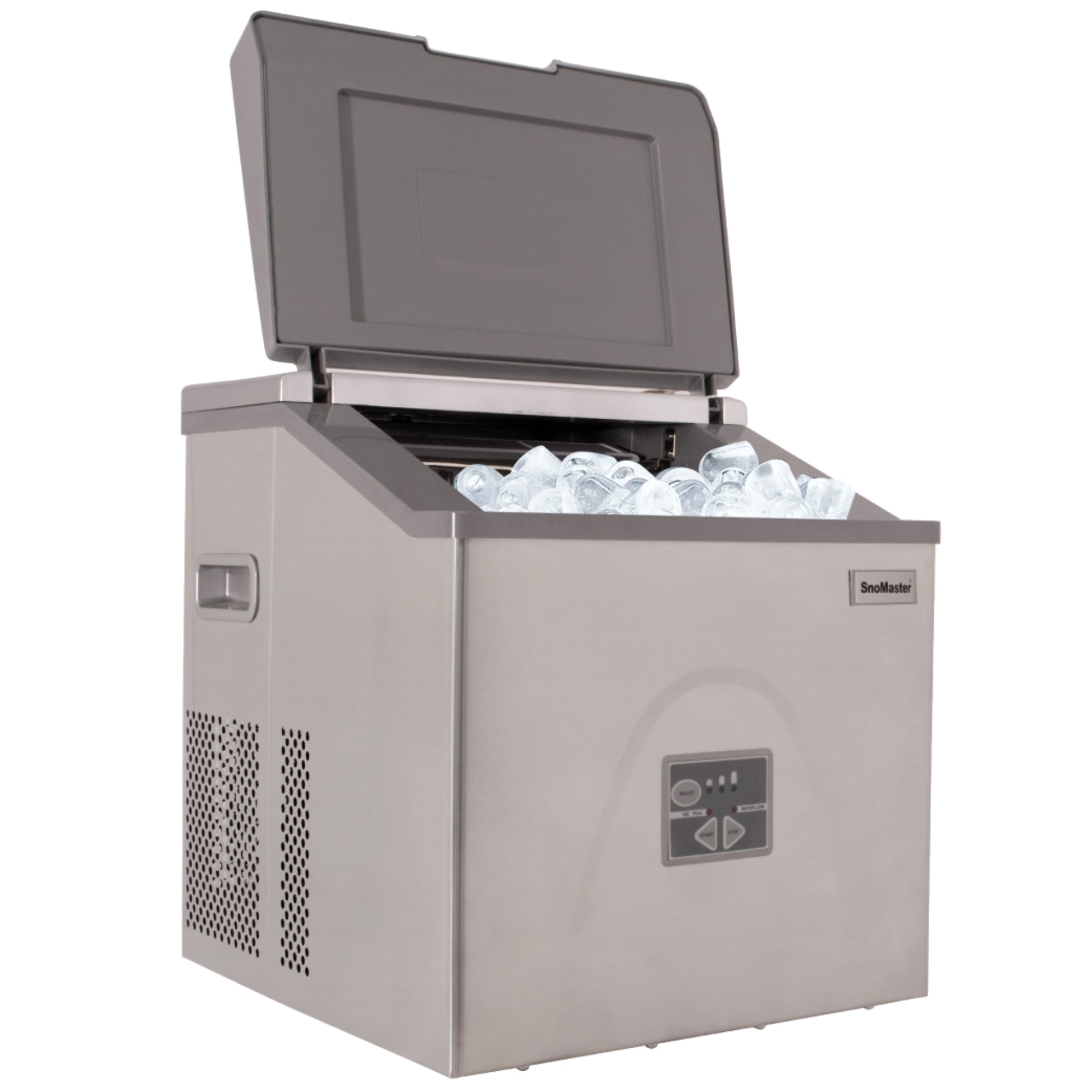User-Friendly Controls: Features an 'Add Water' function, 'Ice Full' sensor, and a diagnostic check on startup for convenient operation.